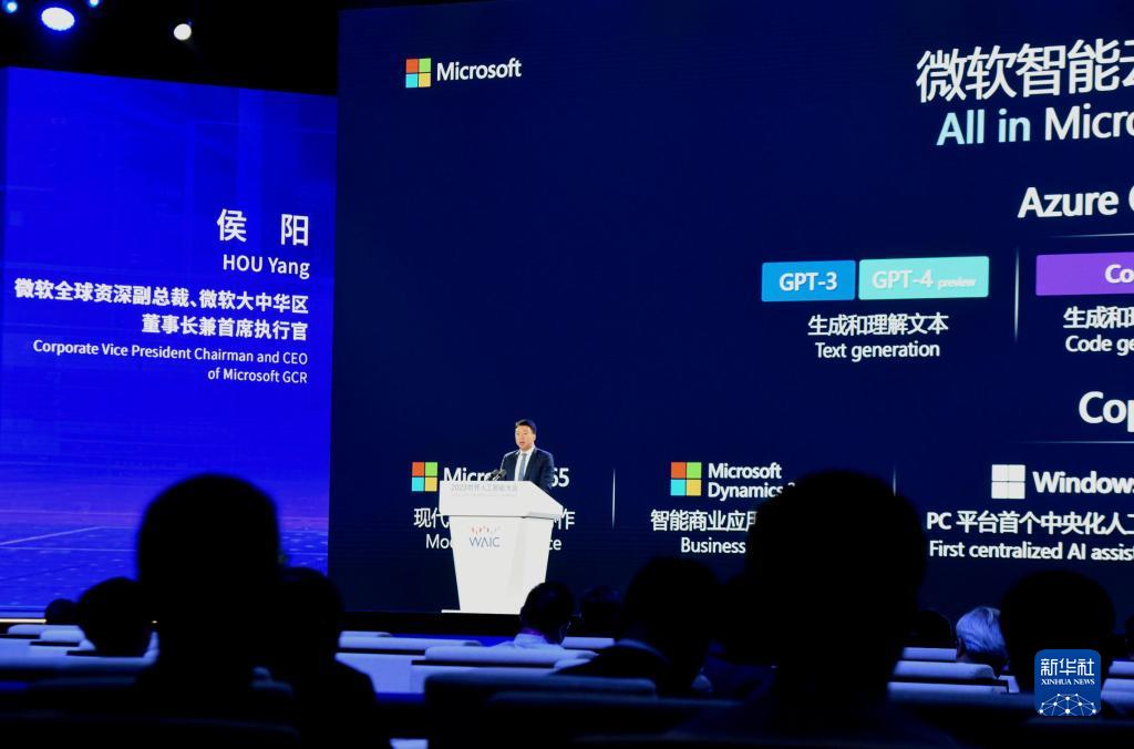 7月6日,微软全球资深副总裁、微软大中华区董事长兼首席执行官侯阳在大会上发表演讲。