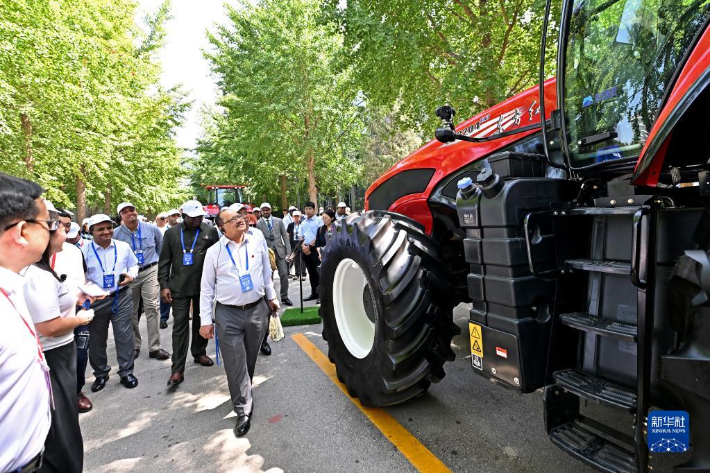 7月6日,驻华使节在国机集团中国农机院参观“东方红”拖拉机。