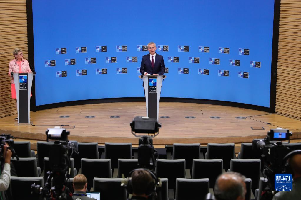 7月6日,在比利时布鲁塞尔的北约总部,北约秘书长斯托尔滕贝格在会议后召开新闻发布会。