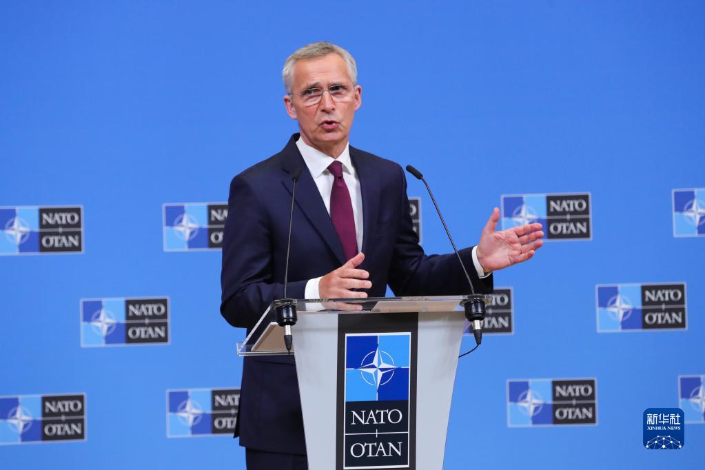 7月6日,在比利时布鲁塞尔的北约总部,北约秘书长斯托尔滕贝格在会议后召开新闻发布会。