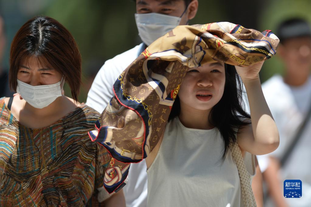 7月7日,行人在泰国曼谷街头用衣物遮阳。
