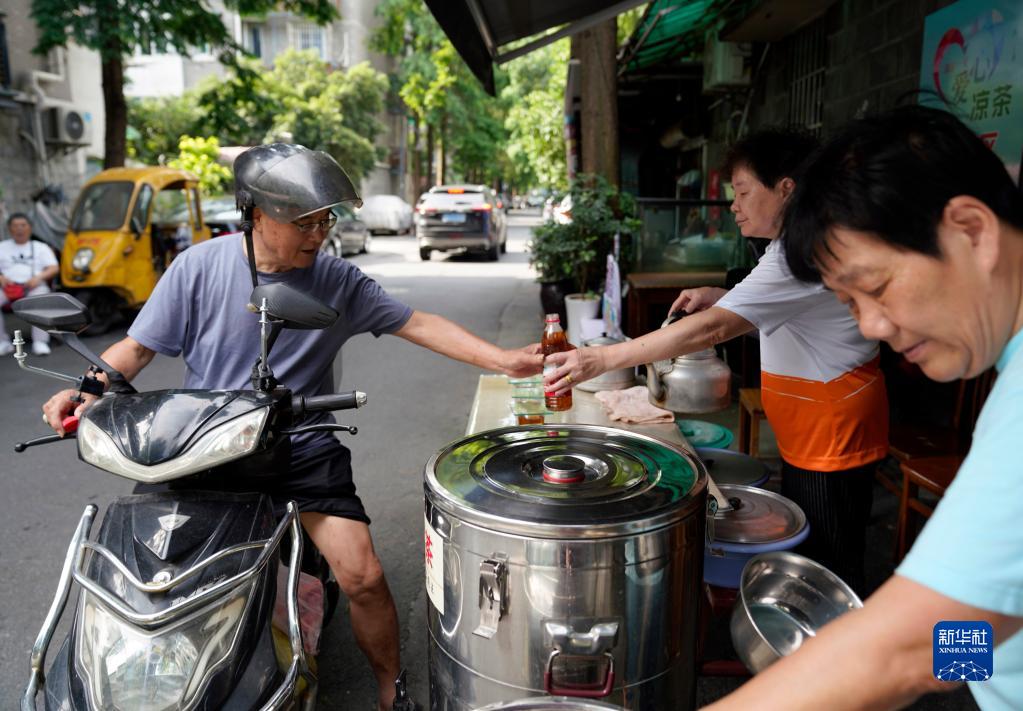 日前,杭州市上城区闸弄口街道濮家联合社区爱心凉茶摊如期出摊,为街坊邻居和户外劳动者免费供应凉茶解暑。从2003年起,这个凉茶摊每年7月至8月出摊,免费为过往行人送清凉。凉茶摊现有13名志愿者负责日常运作,每天上午7点到下午4点出摊。