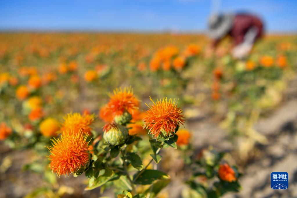 盛夏时节,新疆塔城地区裕民县15.3万亩红花陆续绽放,迎来收获季。裕民县是新疆乃至全国主要的红花产区之一,有着“中国无刺红花之乡”的美称,这里昼夜温差大、日照时间长,为红花的种植提供了良好的条件。