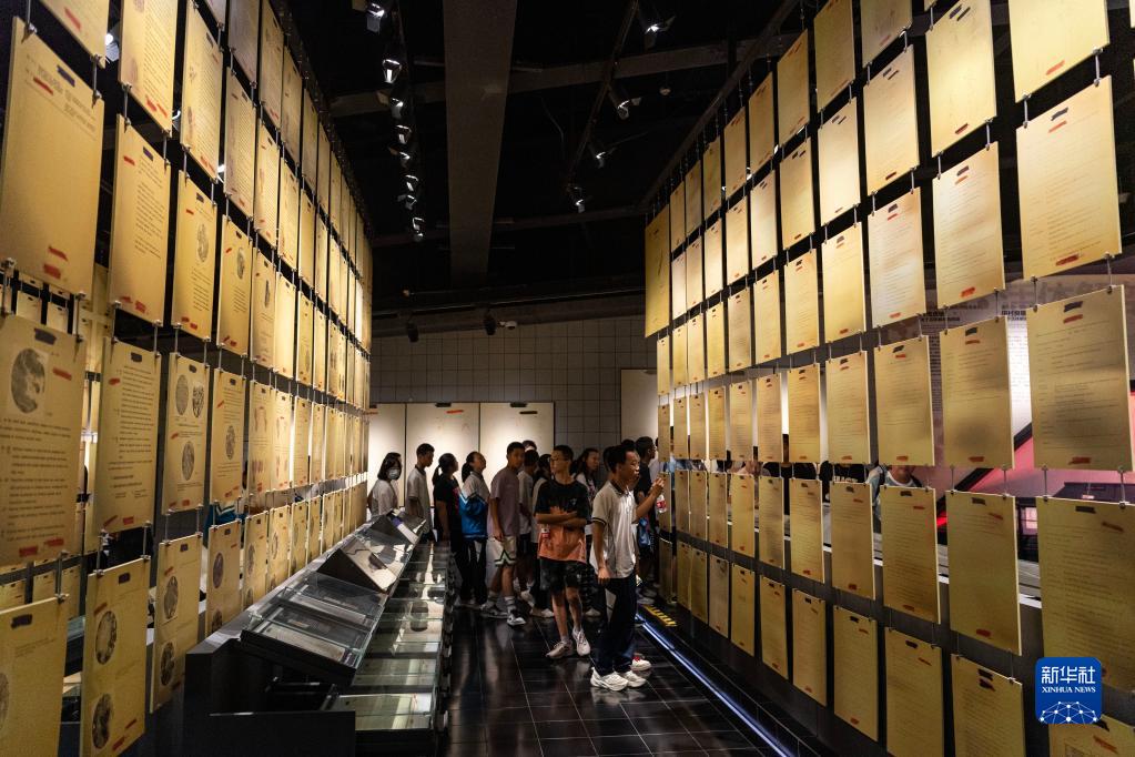 7月7日,在侵华日军第七三一部队罪证陈列馆,参观者观看馆内展陈的罪行证据。