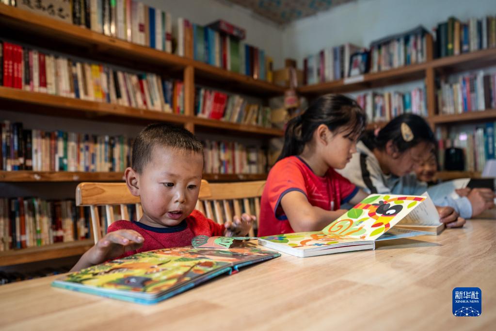 7月5日,秋那桶村的小朋友们在“半山花语”书屋读书。新华社记者 江文耀 摄
