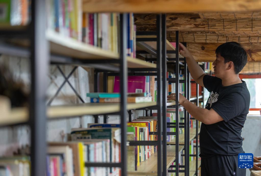 7月5日,甘文勇在“半山花语”书屋整理书籍。新华社记者 费茂华 摄