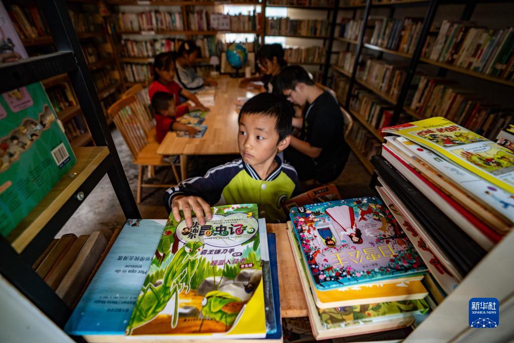 7月5日,秋那桶村的小朋友加鲁在“半山花语”书屋挑选自己想看的书。新华社记者 江文耀 摄