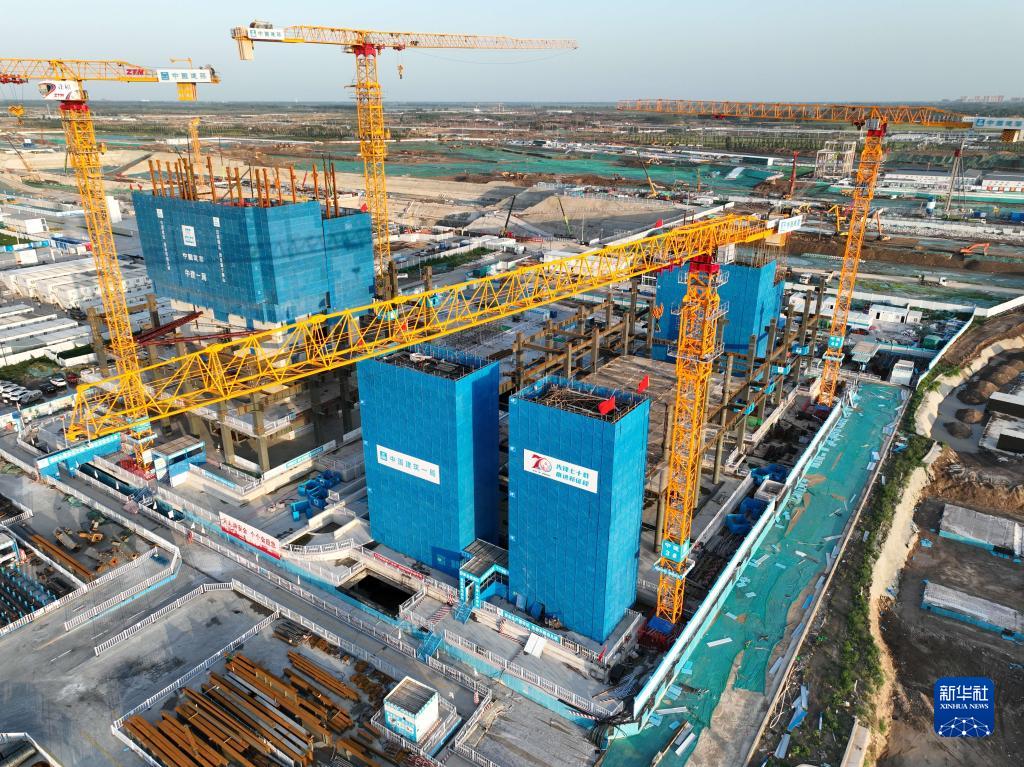 这是位于河北雄安新区启动区的中国华能总部(7月4日摄,无人机照片)。中国华能总部项目建成后将聚焦服务国家能源安全等重大战略,积极布局一批联合创新平台,助力雄安新区打造国家级的能源电力创新高地。