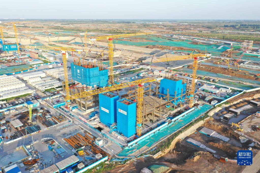 这是位于河北雄安新区启动区的中国华能总部项目(7月4日摄,无人机照片)。中国华能总部项目建成后将聚焦服务国家能源安全等重大战略,积极布局一批联合创新平台,助力雄安新区打造国家级的能源电力创新高地。