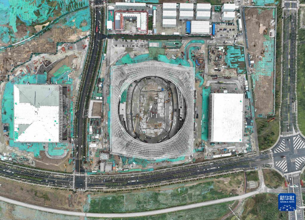 这是位于河北雄安新区启动区的雄安体育中心(7月4日摄,无人机照片)。雄安体育中心是未来雄安新区重要的体育活动配套建筑群,对服务疏解北京非首都功能、完善雄安新区的整体配套,具有十分重要的意义,建成后能够满足承办国际单项赛事与国内综合赛事要求。