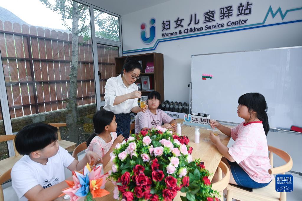 7月7日,在杭州市临安区清凉峰镇新峰村妇女儿童驿站,新乡贤陈雨霞给当地儿童上暑期公益课程,教孩子们制作天然香皂。