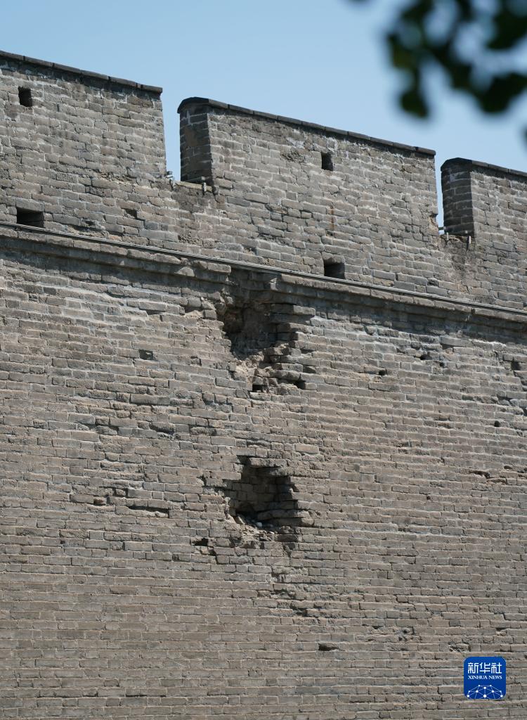 这是7月6日拍摄的宛平城城墙上的“七七事变”弹坑遗址。