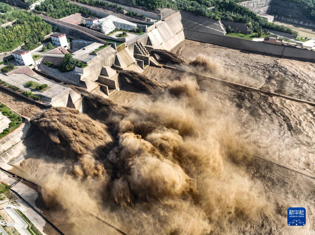 这是7月7日拍摄的黄河小浪底水库排沙出库场景(无人机照片)。