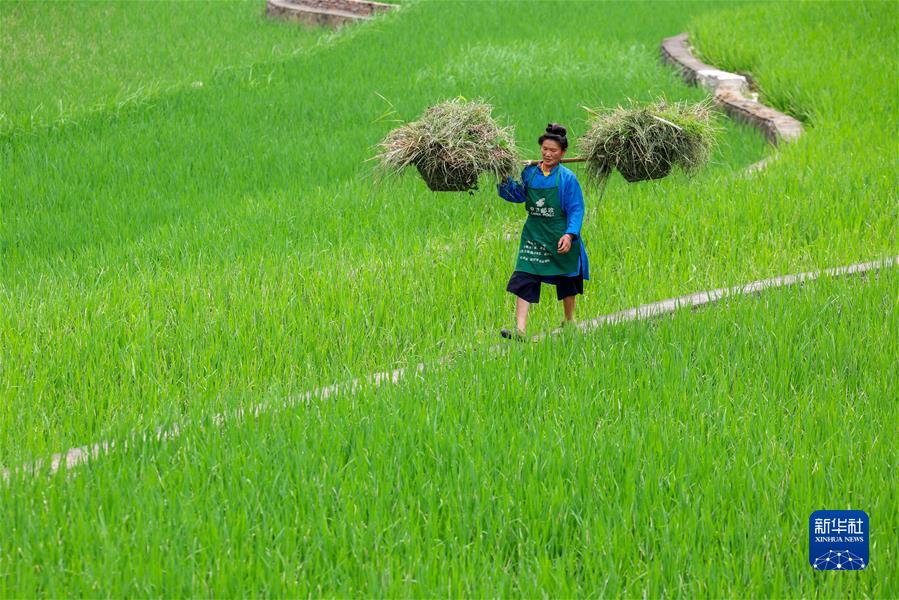 7月7日,村民在贵州省黔东南苗族侗族自治州丹寨县扬武镇老冬村田间劳作。 当日是小暑节气,各地农民抢抓农时开展农事生产。 新华社发(杨胜贤摄)