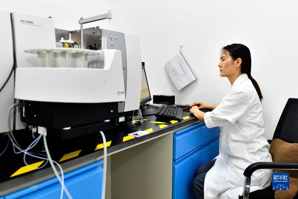 7月7日,在北京葆年堂(菏泽)药业有限公司,工作人员对中药材进行农残和重金属检测。