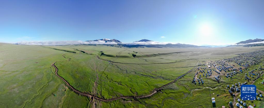 巴音布鲁克草原景色(7月7日摄,无人机全景照片)。