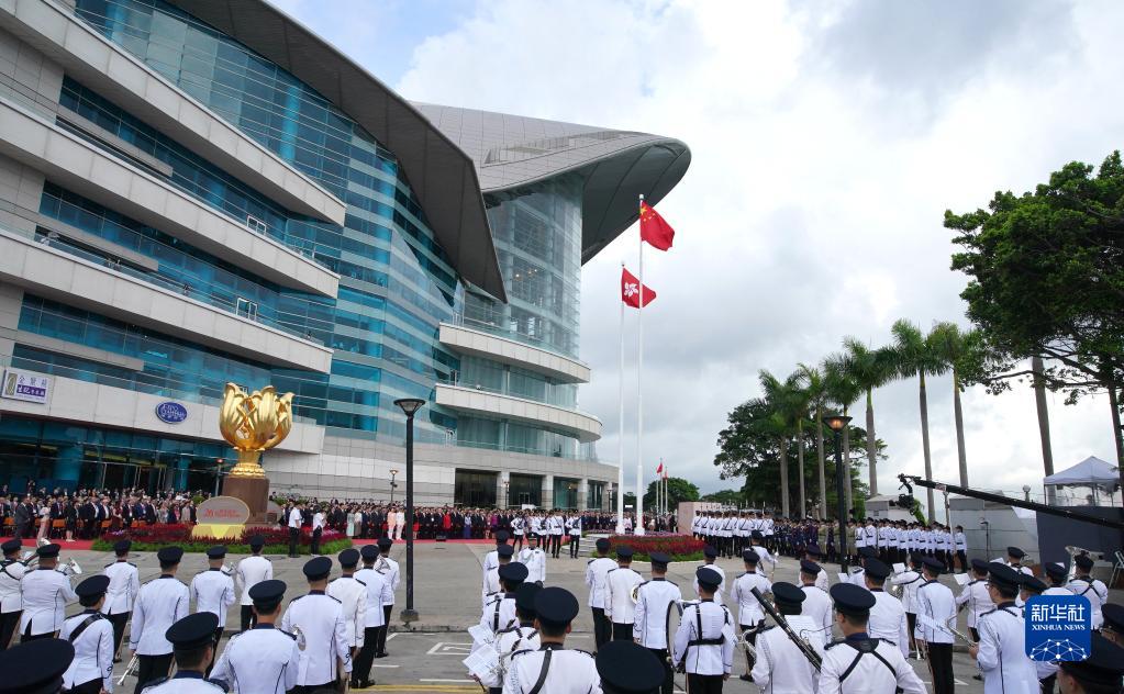 7月1日,香港特区政府在金紫荆广场举行升旗仪式,庆祝香港回归祖国26周年。