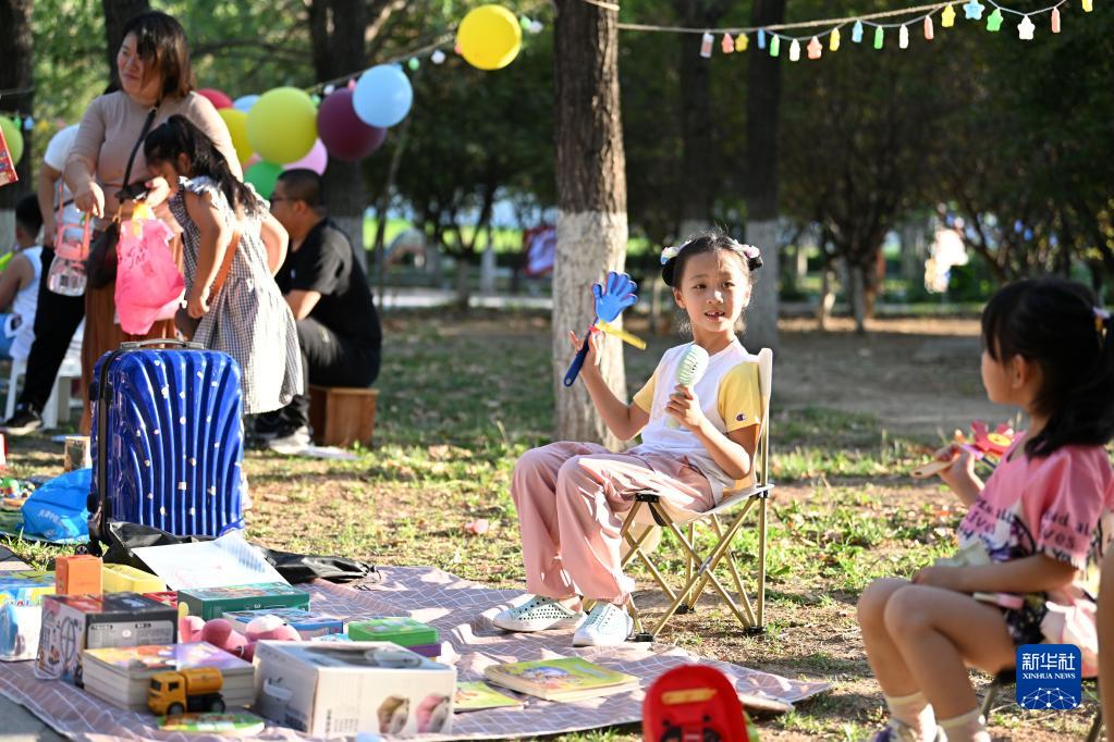 当日,天津市少年儿童活动中心举办娃娃集市、帐篷音乐会等活动,丰富孩子们的暑期生活。