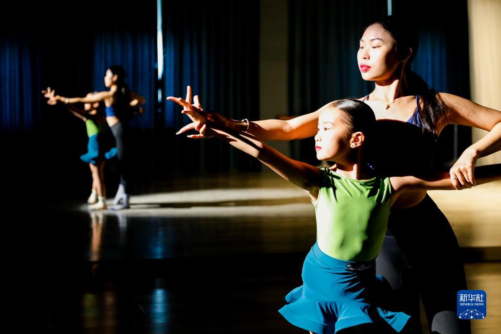 7月8日,在河南省焦作市武陟县一家培训机构,舞蹈老师指导学生练习舞蹈动作。
