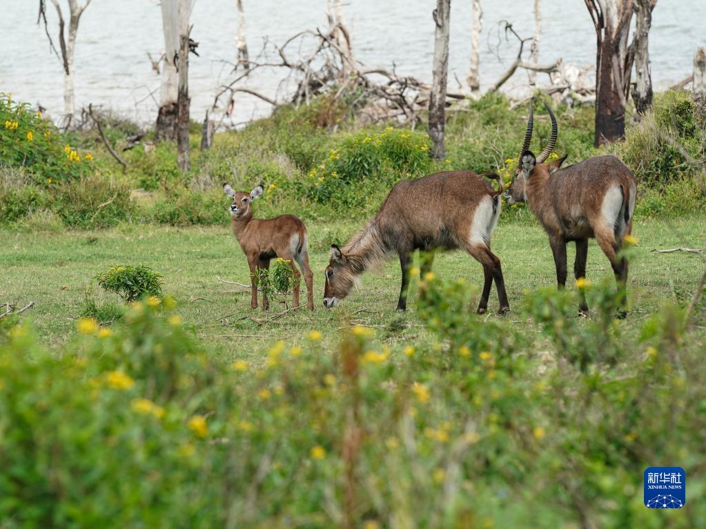 7月8日,水羚在肯尼亚奈瓦沙湖新月岛上活动。