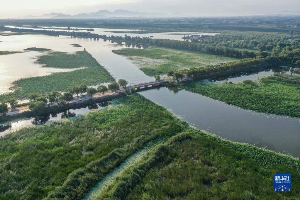 7月9日拍摄的白云湖国家湿地公园景色(无人机照片)。