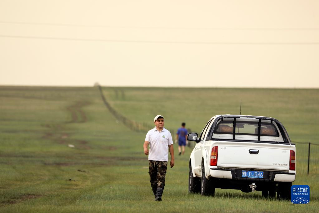6月26日,巴达玛斯仁巡查草场围栏。