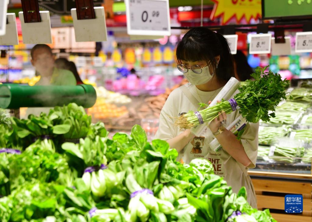 7月10日,顾客在江苏省无锡市一家超市选购蔬菜。