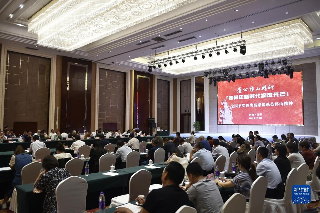 这是7月8日在河南省济源市拍摄的愚公移山精神座谈会现场,济源是愚公移山神话故事的发源地。