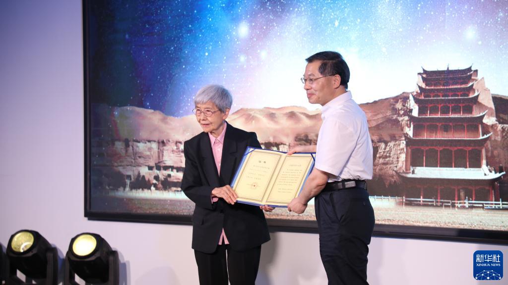 7月10日,樊锦诗(左)领取“樊锦诗星”命名证书。