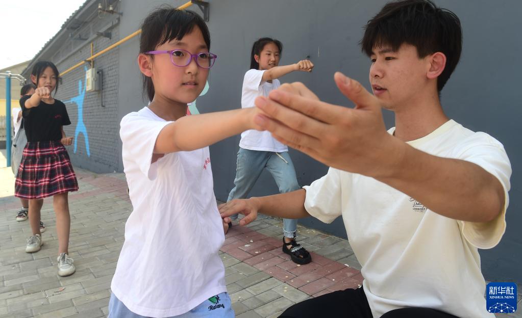 暑假期间,河北沧州孟村回族自治县30多名回乡大中专学生组成志愿服务队,走进乡村、社区,为留守儿童和有需要的青少年开展志愿服务,义务辅导作业、传授体育武术,让孩子们度过一个多彩假期。