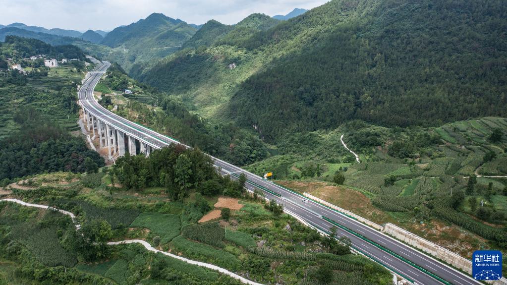 车辆行驶在德余高速公路宽坪至杨家坳路段(7月10日摄,无人机照片)。