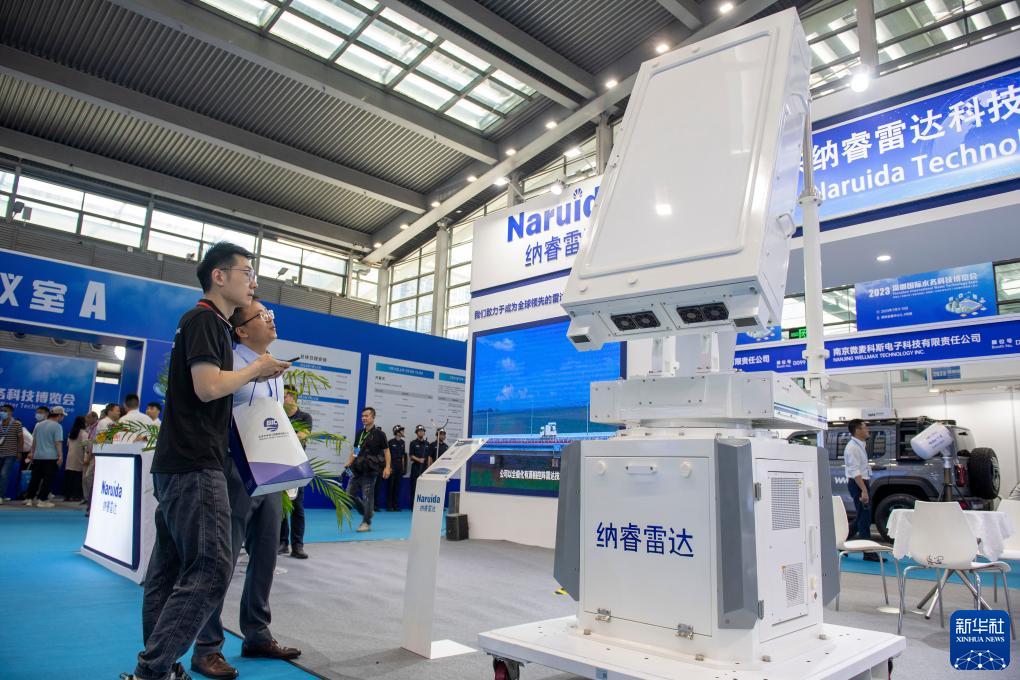 7月11日,参观者在2023深圳国际水务科技博览会了解一款测雨雷达。