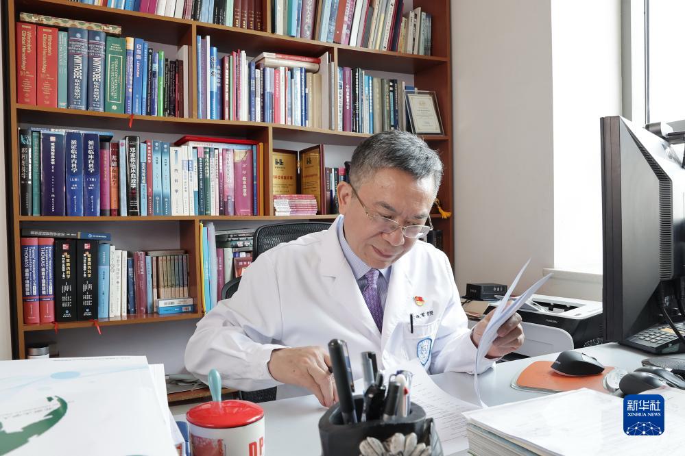 7月3日,黄晓军在北京大学人民医院办公室内工作。