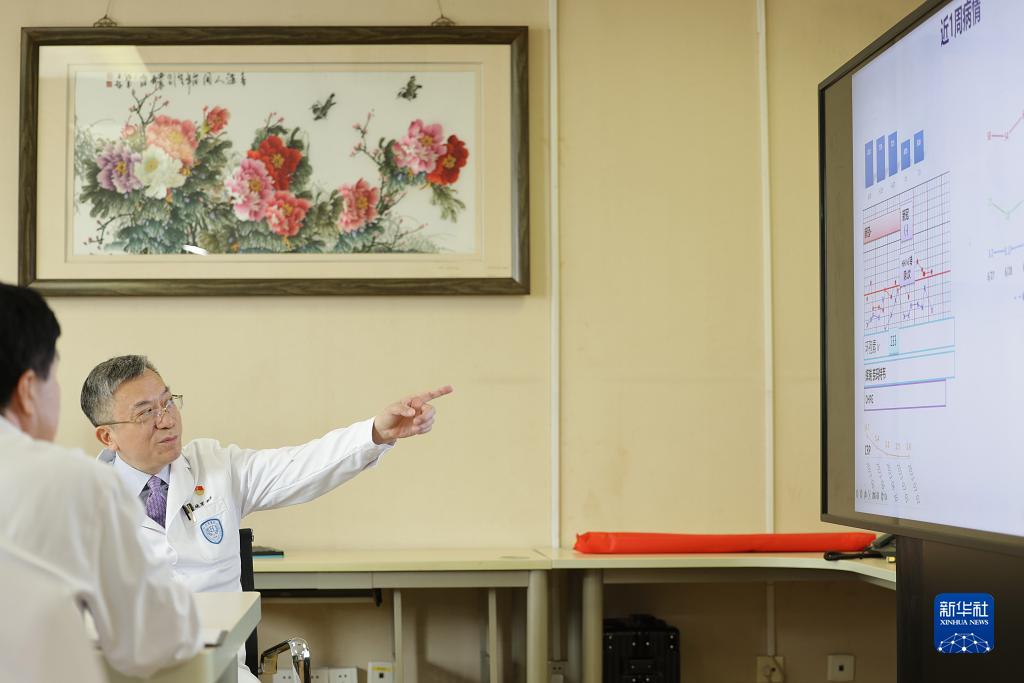 7月3日,黄晓军在北京大学人民医院血液科进行教学查房。