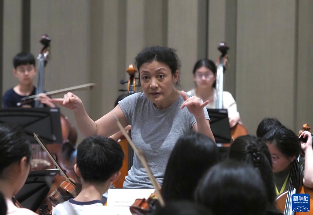 7月11日,上海交响乐团驻团指挥张洁敏在给“MISA学生节日乐团”学生进行首次联排。