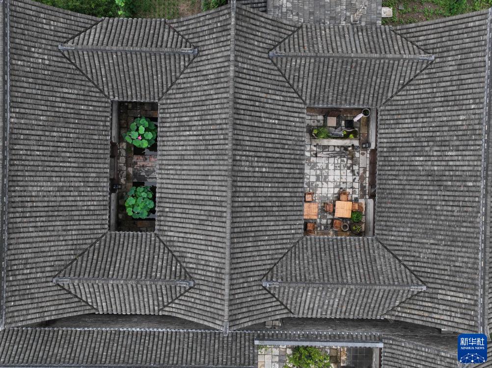 7月11日拍摄的穆沟古村的建筑(无人机照片)。