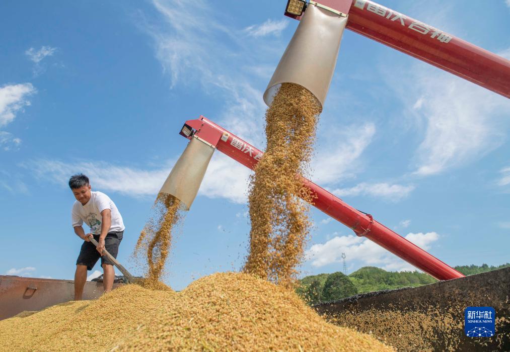 盛夏时节,湖南省多地进入一年当中最繁忙的“双抢”季节,农民们冒着酷暑抢收早稻、抢插晚稻,为全年粮食丰产打下基础。新华社发(蒋克青 摄)
