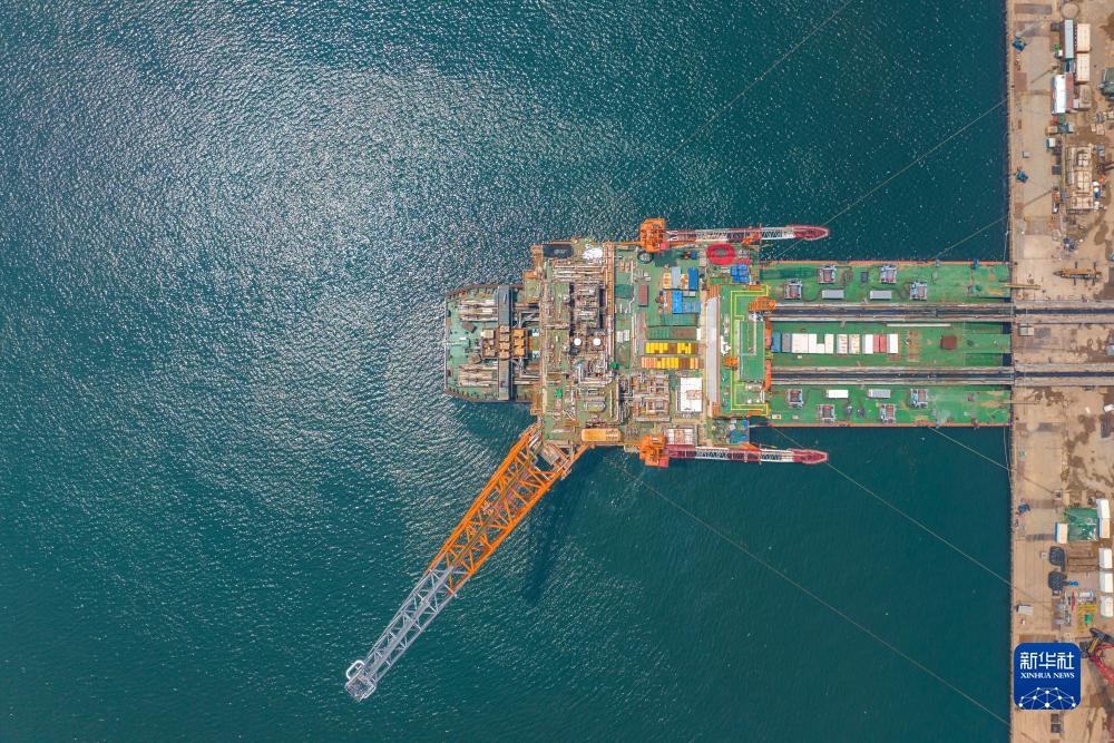 7月10日,渤中19-6凝析气田一期项目中心平台在青岛成功装船,即将奔赴渤海西部海域,进入海上安装和联调阶段。新华社发(杜鹏辉 摄)