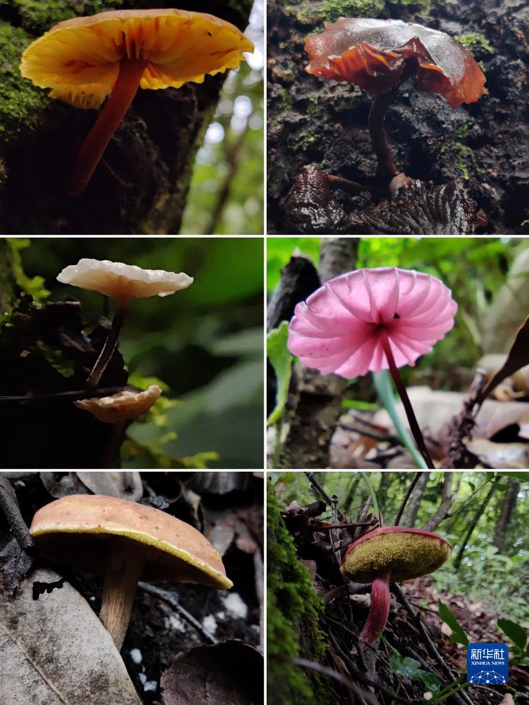 这是7月10日在高黎贡山国家级自然保护区拍摄的野生菌(拼版照片)。新华社记者 江文耀 摄