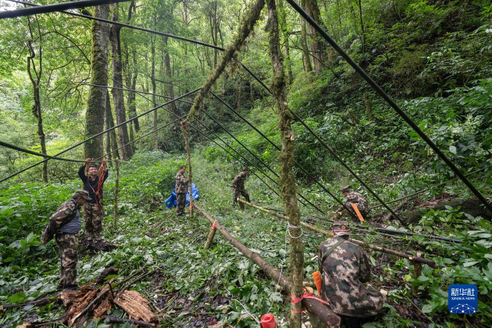 7月8日,巡护队员在高黎贡山国家自然保护区搭棚子。新华社记者 费茂华 摄