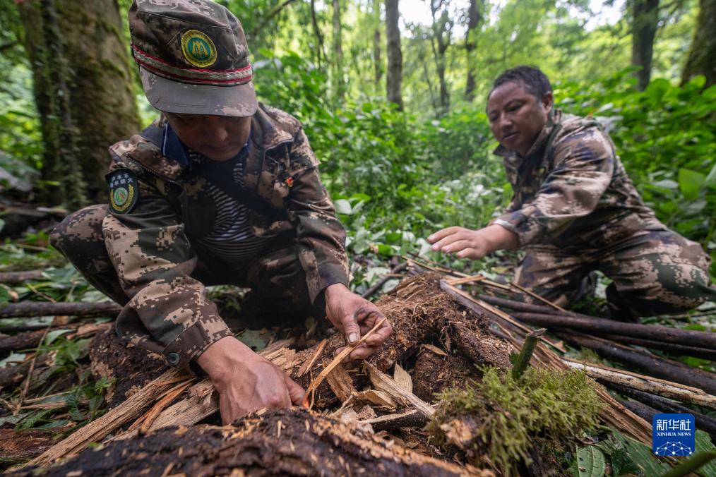 7月8日,在高黎贡山国家自然保护区,巡护队员点燃篝火。新华社记者 费茂华 摄