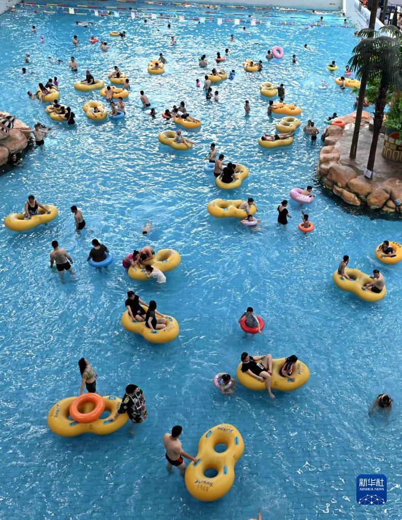 当日是入伏第一天,人们来到海边、泳池和水上乐园戏水消暑,畅享清凉。