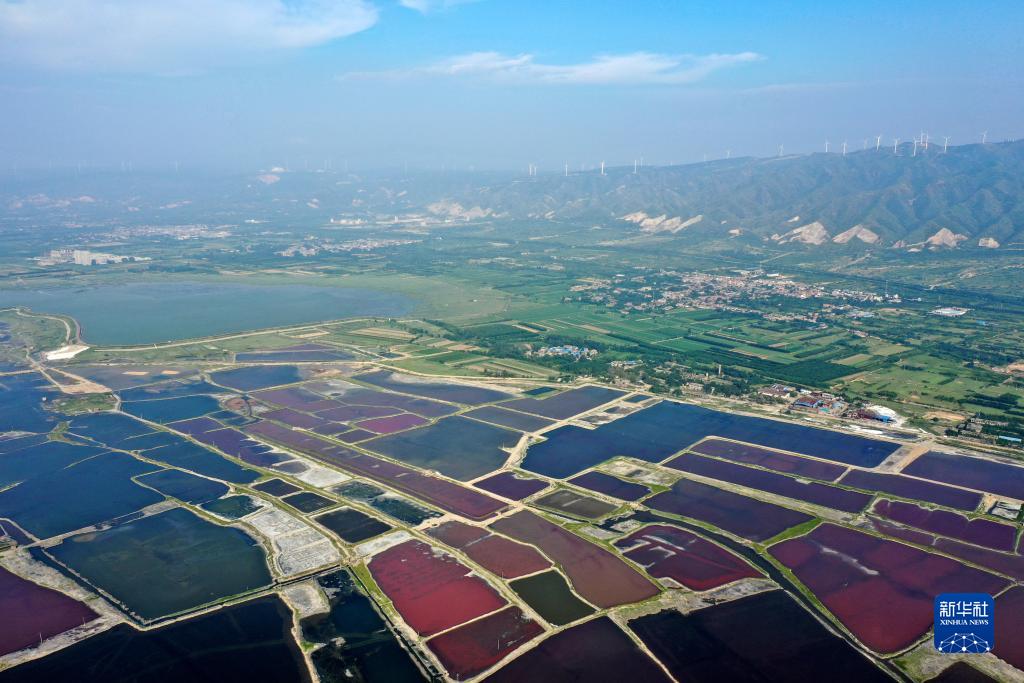 这是无人机拍摄的运城盐湖(7月11日摄)。