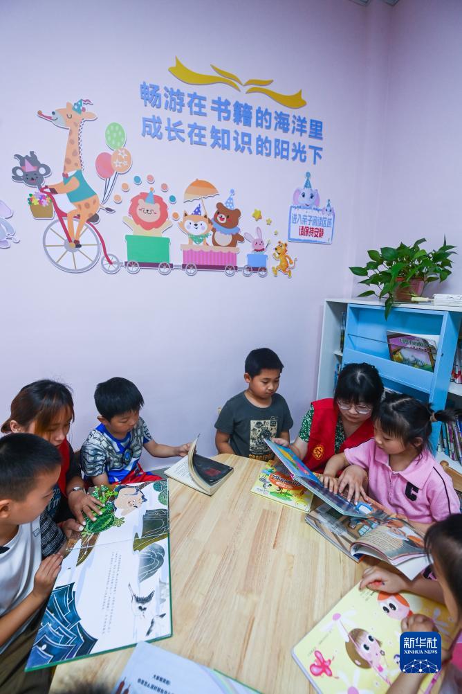 7月12日,孩子们在当日开班的乌桥村暑期夏令营里读书。为解决外来务工人员子女暑期“看护难”问题,嘉兴市南湖区新丰镇社工站联合乌桥村开展“候鸟归巢,欢乐一‘夏’”暑期夏令营,外地来此过暑假的小候鸟们可以在这里学习科普知识,接受暑期安全教育,参加绘画、手工兴趣课等。