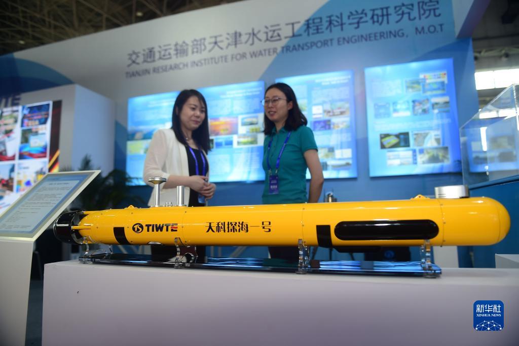 7月12日,在航海科技博览会上拍摄的“探海一号”自主水下机器人。
