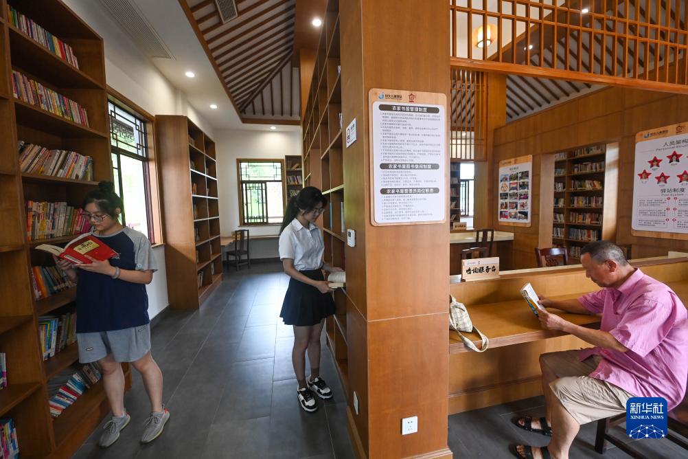 7月13日,在上田村农家书屋,村民在法律图书角阅读。上田村专门设立农家书屋法律图书角,内容涵盖法律书籍、法治宣传漫画、法治期刊等。