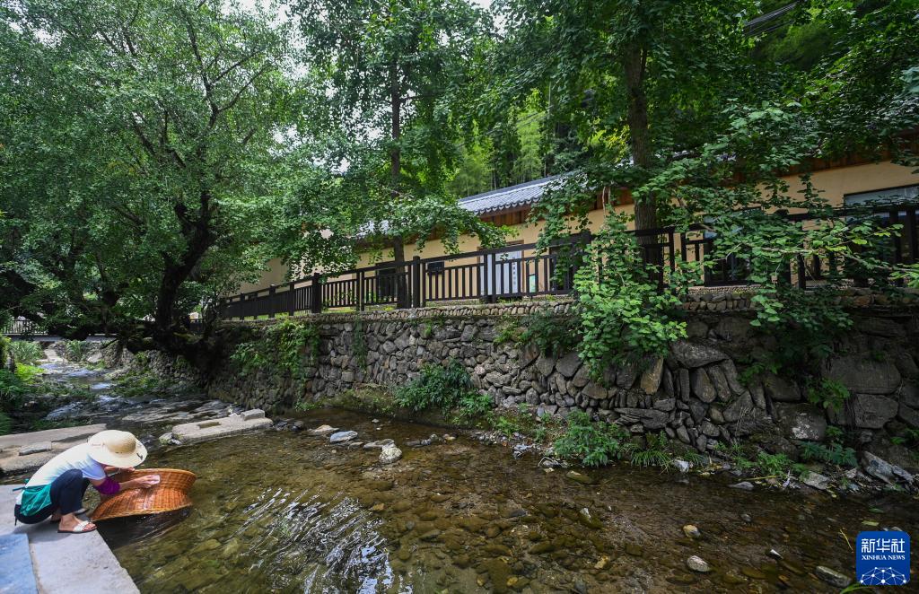 7月13日拍摄的湍口镇湍源里民宿集群。这个由闲置粮仓和村民旧居改造而成的民宿由当地新乡贤出资打造并经营,为村集体增加租金收入300万元,带动100余人次就业。