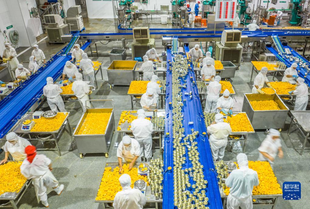 时下正值黄桃上市旺季,位于三峡库区的湖北省宜昌市秭归县的食品加工企业开足马力,将当地丰收的黄桃加工制作成罐头。近年来,当地采取“龙头企业+基地+合作社+农户”的方式,大力发展黄桃产业,帮助农民增收,助力乡村振兴。
