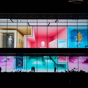 这是7月13日拍摄的浦东美术馆镜厅灯光秀。