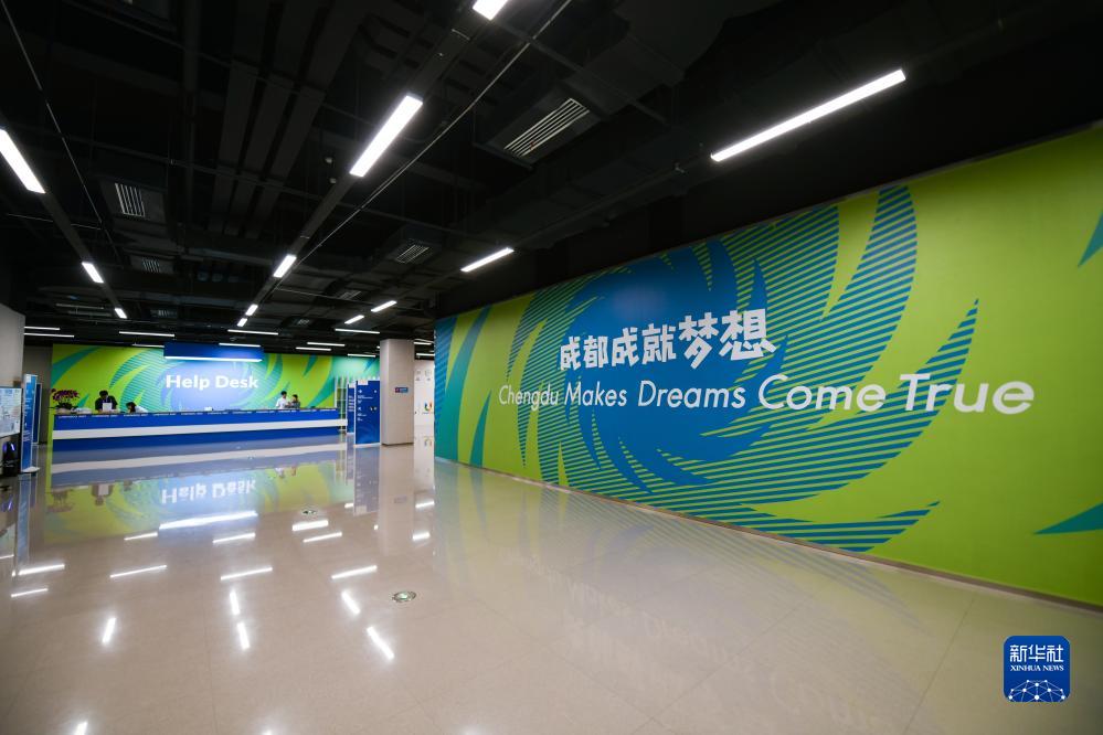 这是7月13日拍摄的成都大运会主媒体中心服务台。